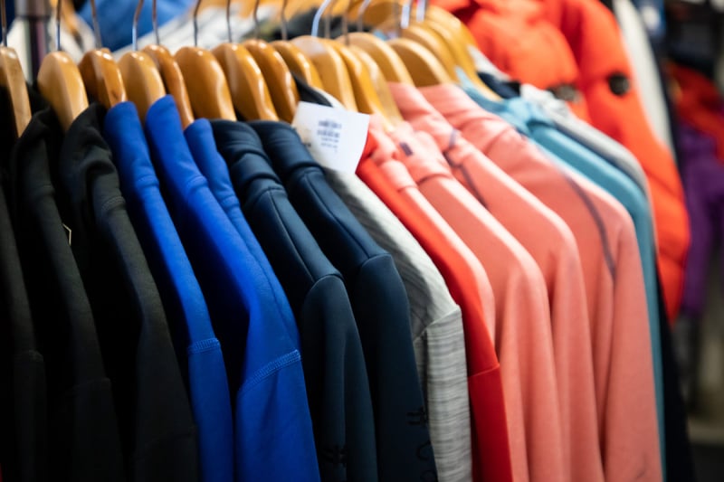 Bekleidung und Rucksäcke